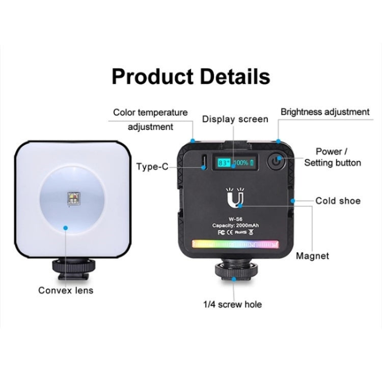 VLOGLITE W-S6 Magnetic Mini Full Color RGB LED Camera Light Sunset Atmosphere Lamp