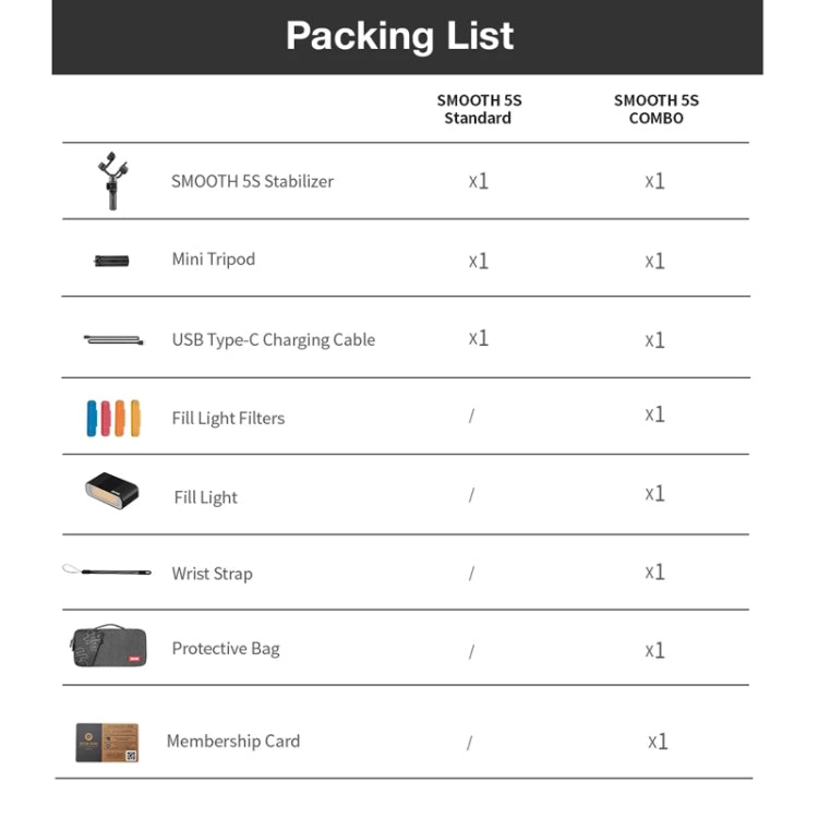ZHIYUN Smooth 5S 3-Axis Smartphone Handheld Gimbals Stabilizer, Spec: Combo Black