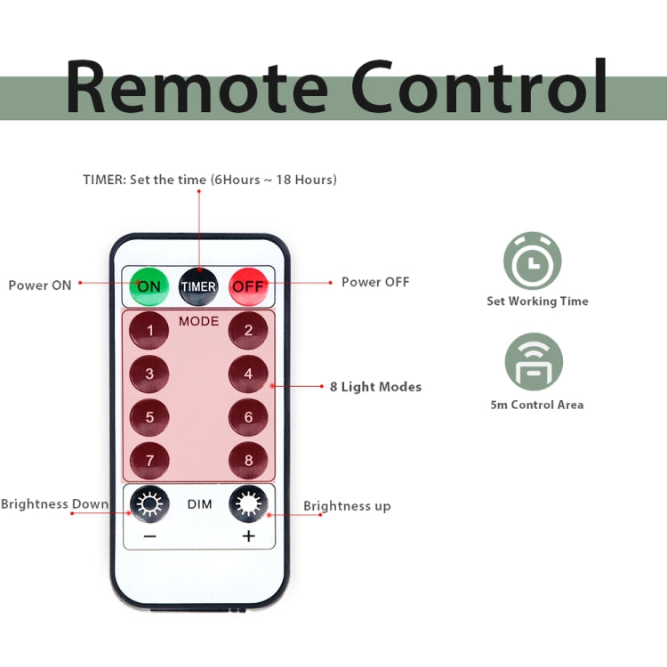 1. Power supply: battery box (3 x AA batteries, not included) / solar energy (600mAh) / USB