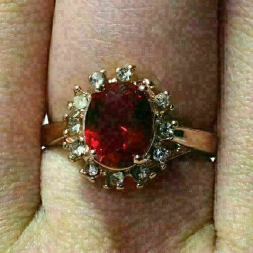 Looking for a stunning and unique piece of jewelry that will take your breath away? Look no further than our gorgeous Ruby Halo Ring, featuring a brilliant oval Moissanite secondary stone surrounded by a halo of sparkling Ruby stones. With a total carat weight of 2.00 - 4.99 and a beautiful rose gold plated finish, this ring is sure to turn heads and make a statement wherever you go. Other features include: