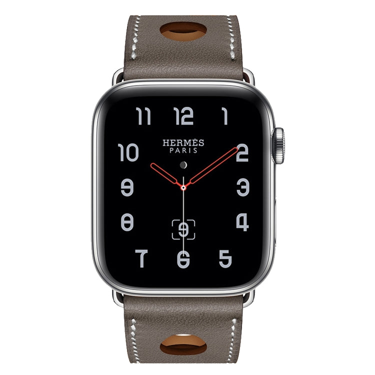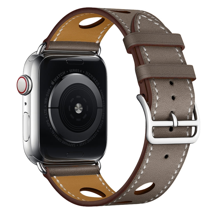 For Apple Watch Series 7 45mm / 6 & SE & 5 & 4 44mm / 3 & 2 & 1 42mm Leather Three Holes Watch Band(Grey)