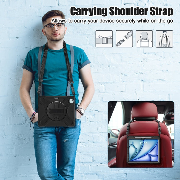 For iPad Pro 12.9 2022 / 2021 Rotatable Holder Silicone Hybrid PC Tablet Case with Shoulder Strap(Black)