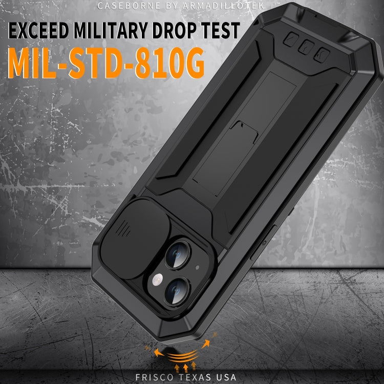 For iPhone 15 R-JUST Sliding Camera IP54 Life Waterproof Holder Phone Case(Black)