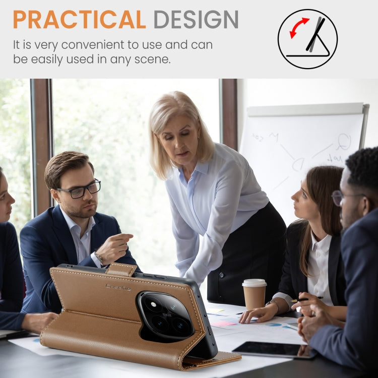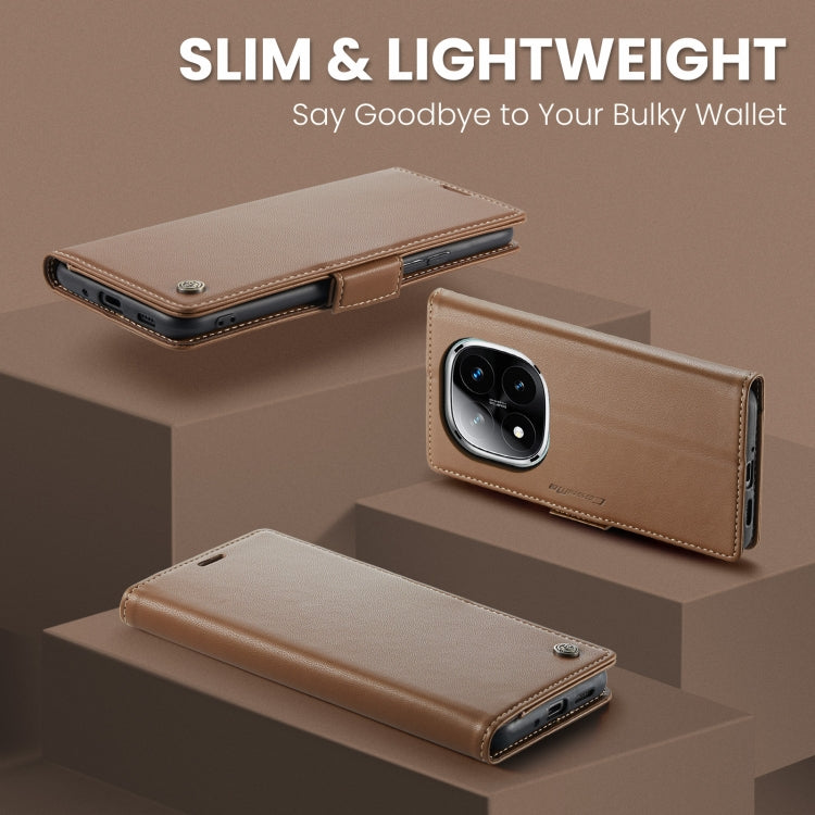 For Redmi Note 14 Pro 5G CaseMe 023 Butterfly Buckle Litchi Texture RFID Anti-theft Leather Phone Case(Brown)