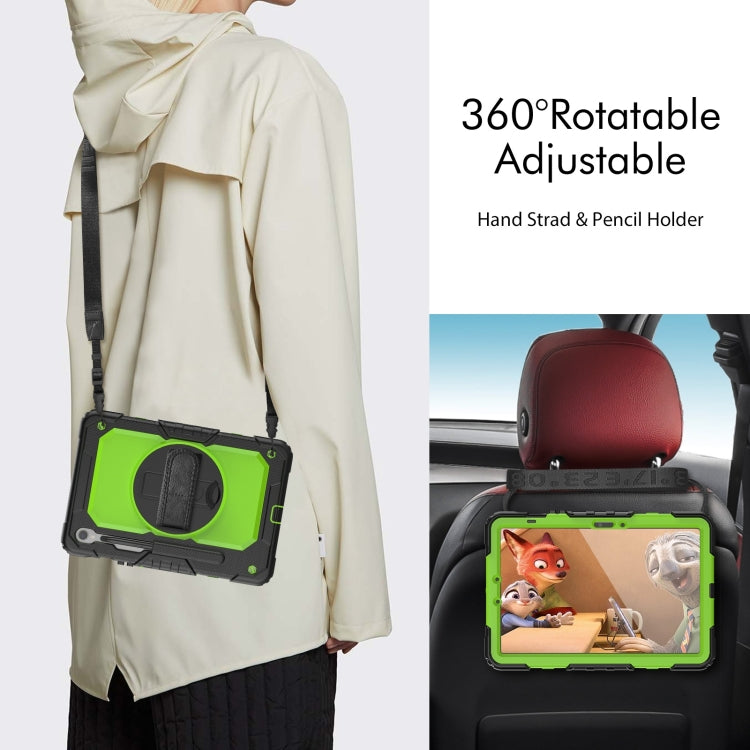 For Samsung Galaxy Tab S9 / S9 FE / S10 FE Lucky Wheel Grip Silicone Hybrid PC Tablet Case with Shoulder Strap(Black+Yellow Green)