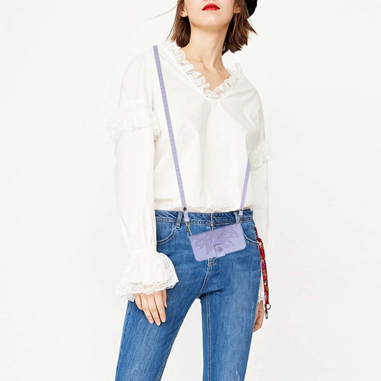 For vivo V27E 4G Global Skin Feel Sun Flower Embossed Flip Leather Phone Case with Lanyard(Purple)