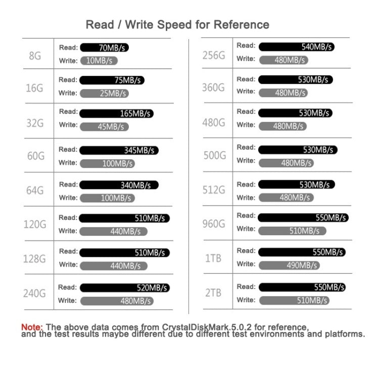 - Read/Write Speed:Read 64-550MB/S: Write:22-500MB/S