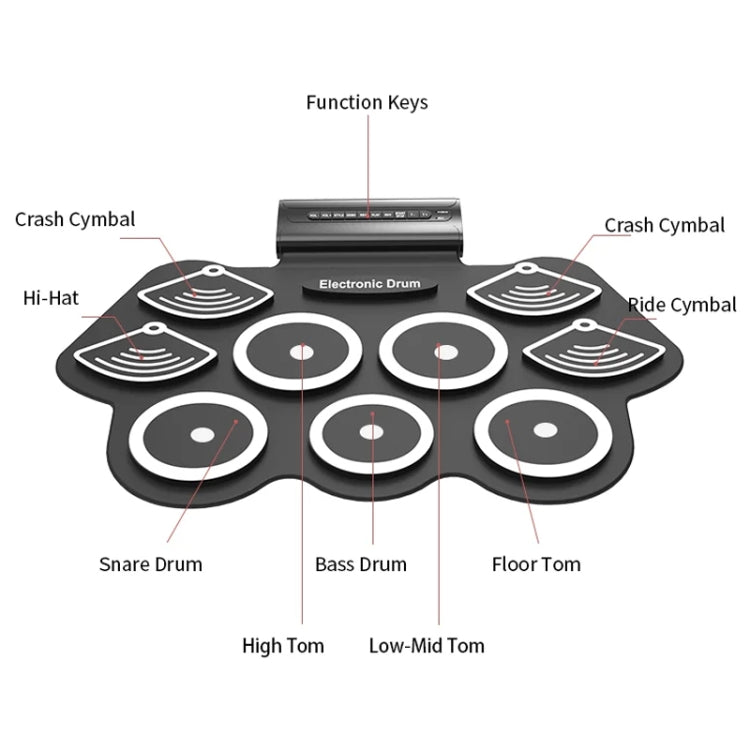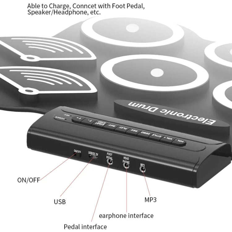 W562 Thickened 7 Drum Set Silicone Hand Rolled Drums Jazz Drums Percussion Instruments Electronic Drums